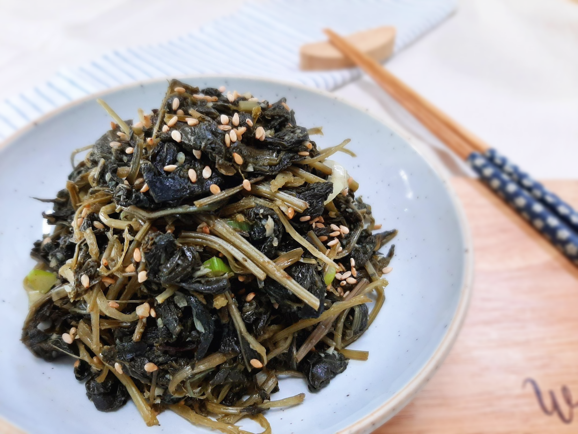취나물을 만들 때 고소하고 고소한 맛을 더해주는 들깨가루를 조금 넣으면 시원하지 않고~ 기분 좋은 고소한 맛이 납니다.건가지, 건호박, 건부지경이, 건아주칼리, 건취나물 등 건어물볶음을 만들 때는 참기름보다는 들기름이 잘 어울립니다.