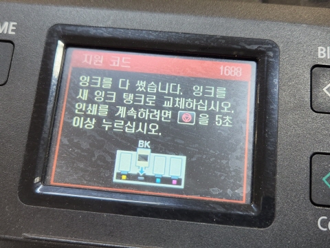 오늘 잉크가 떨어졌습니다. 메시지가 나타납니다