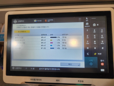 문제가 없는지, 토너 잔량/소모품 잔량 확인